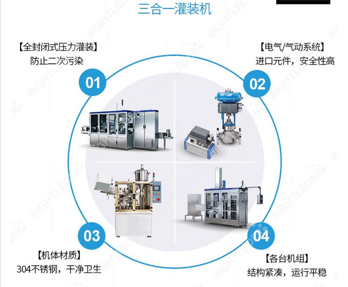 6.直線無壓灌裝壓蓋機:新型技術定量定位灌裝,無壓力均勻灌裝,達到液位準確不噴桶漲桶,飲用水得到灌裝。適合中小型設備灌裝。無溢水滴水,無二次污染。壓蓋采用不銹鋼鏈條聯系壓蓋,再加上氣缸,雙重壓蓋。無蓋自動報警。