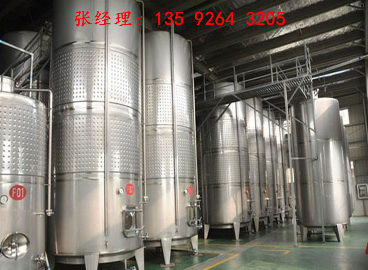 4.主發酵(前發酵)。將調整后的果漿放人發酵池(或發酵桶),按每升原料接種酵母50~100克,同時加入酵母營養粉,按0.4%~0.5%加。接種后8~12小時內,充分攪拌,使酵母在原料內均勻分布。接種酵母之后,逐漸升溫至23℃,27℃,30℃。在酒帽形成之后,每天下壓酒帽攪2~4次,每次10~15分鐘,直到發酵結束。酒精發酵期為6~14天,發酵的最適溫度在23℃~30℃,更高不能超過36℃。在此期問,由于糖在酵母菌的作用下,轉化成酒精和二氧化碳,同時液體溫度逐漸上升,并可以聽到似水要沸騰的響聲,形成“酒帽”。當“酒帽”下沉時,糖大部分也就轉化成酒精了。同時,每天對溫度要進行3次測量,高于36℃應通入冷氣降溫;低于18℃時,應通入熱水或蒸汽升溫。發酵液中應有大量空氣供酵母菌繁殖用,所以,當酵母生長不旺盛時,可將果漿放出后再導入,從而放出二氧化碳,增加液體中的氧氣。