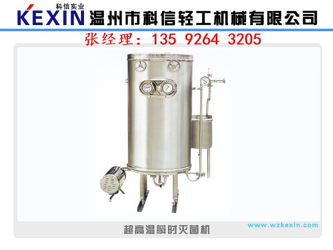 6.溫州科信巴氏滅菌機配有兩個罐,一個罐滅菌,一個罐冷卻,可實行連續(xù)生產(chǎn)